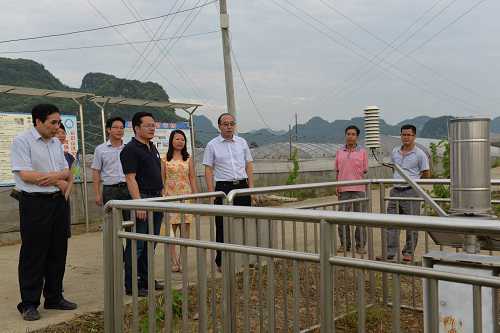 2015年7月17日至7月18日期间,广西壮族自治区气象局党组书记、局长刘家清至来宾忻城县就乡镇气象服务站建设、气象为农服务示范点建设、地面气象观测站迁移等方面进行调研指导工作。刘家清一行先后走进忻城县马泗乡气象信息服务站、马泗乡果蔬大棚基地为农服务示范点、忻城县国家气象站新选址等地进行调研。在马泗乡气象信息服务站,刘家清局长查看了服务站办公设备、值班人员履职情况等,并对标准化气象服务站建设表示肯定。他强调,一是县气象局要以马泗乡为点,总结良好的建设经验,继续推进服务站标准化建设工作;二是要有效衔接乡委乡政府工作部署,发挥乡镇服务站在气象为农服务、防灾减灾等方面的优势,形成服务站在乡镇基层规范运行的长效机制。